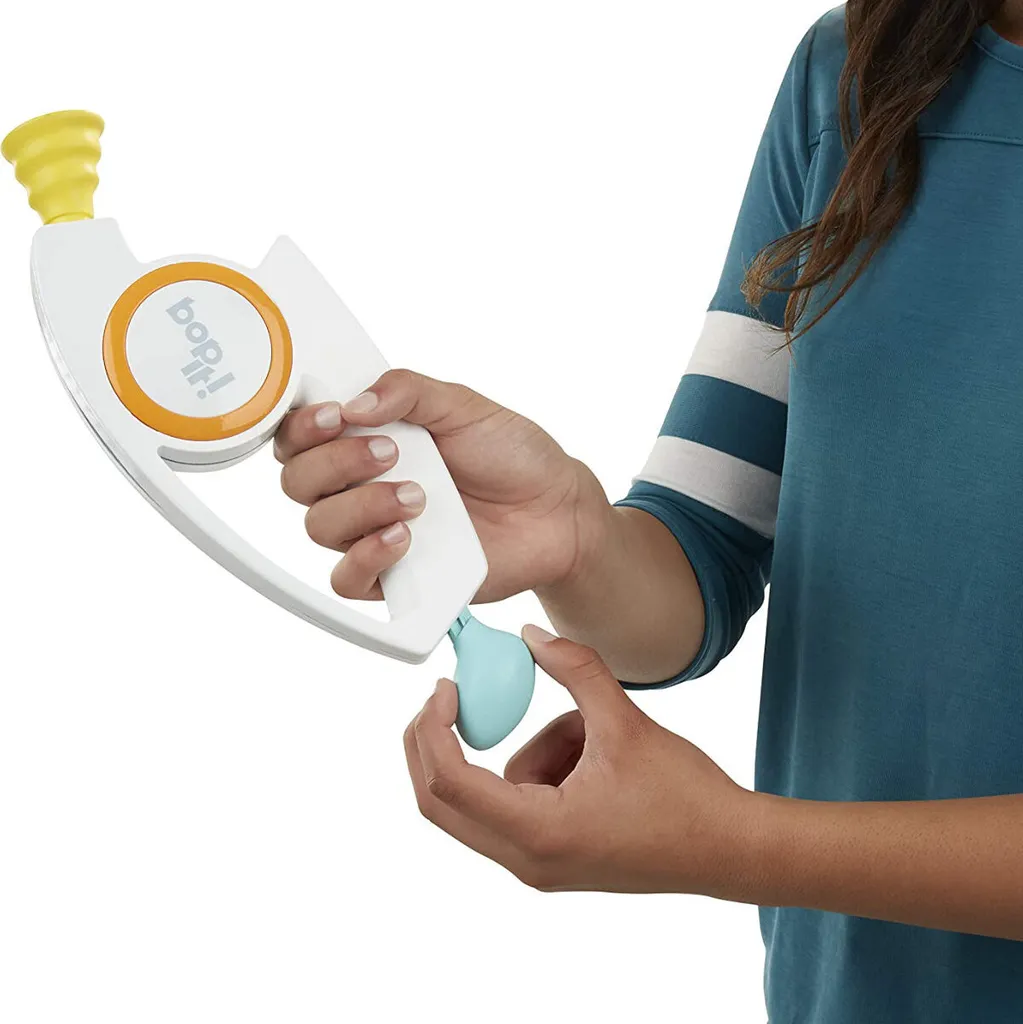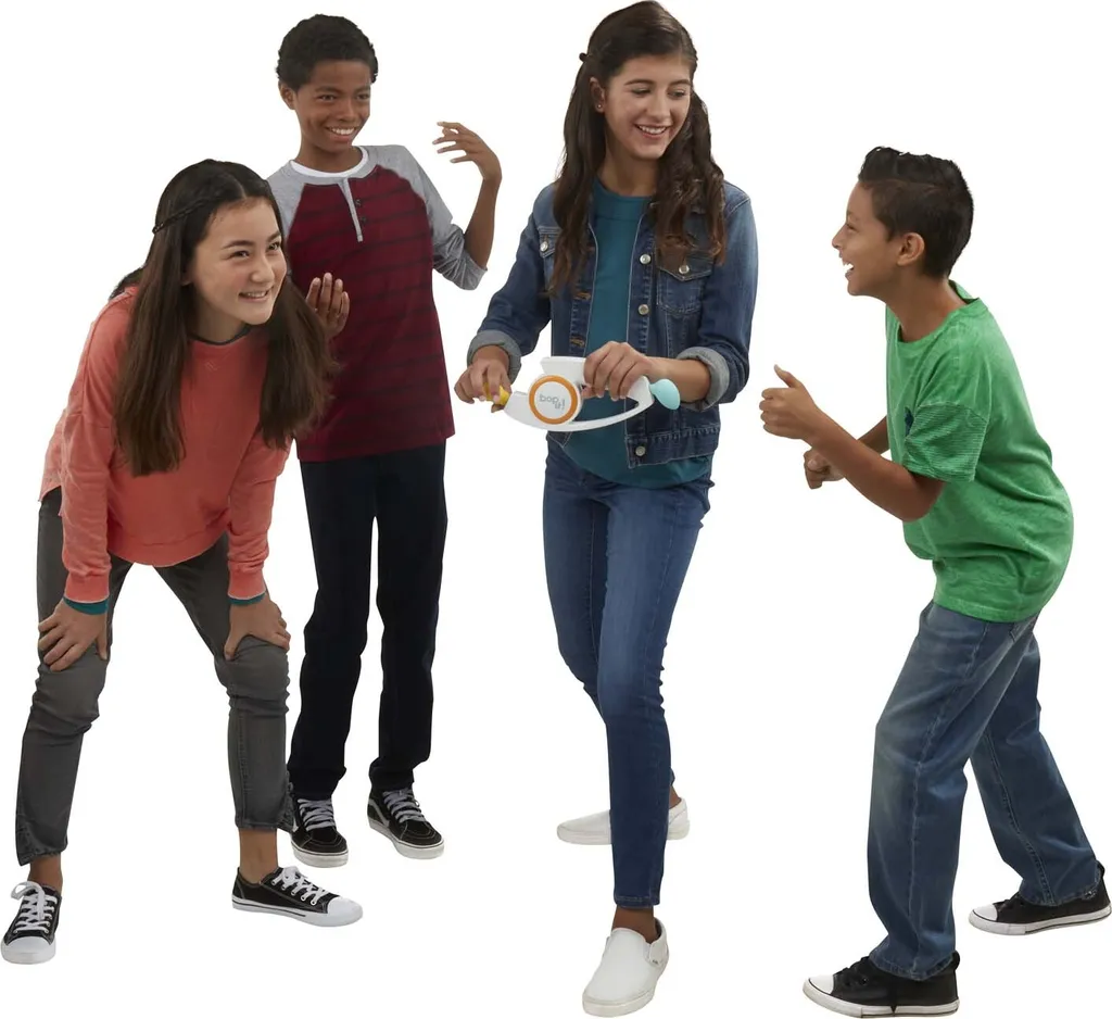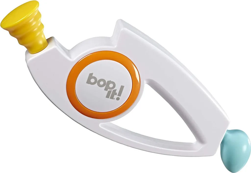 Seit Jahren ist Bop It mit den Kommandos „klopfen, drehen, ziehen“ ein Garant für spannende Momente und Spielspaß in der Gruppe. Im Classic-Modus kann ein Spieler immer wieder versuchen, seinen eigenen Highscore zu knacken, während Bop It im Mehrspieler-Modus für richtige Partystimmung sorgt. Dann heißt es, nicht aus dem Spiel zu fliegen und Bop It im richtigen Moment an den nächsten Spieler weiterzugeben. Das Spiel kommt mit 3 Lautstärke-Einstellungen und gibt am Anfang jeder Solo-Runde den Highscore bekannt. Ein rasantes Spiel, das bei jeder Party für Stimmung und einen lustigen Abend mit Freunden und Familie sorgt.
