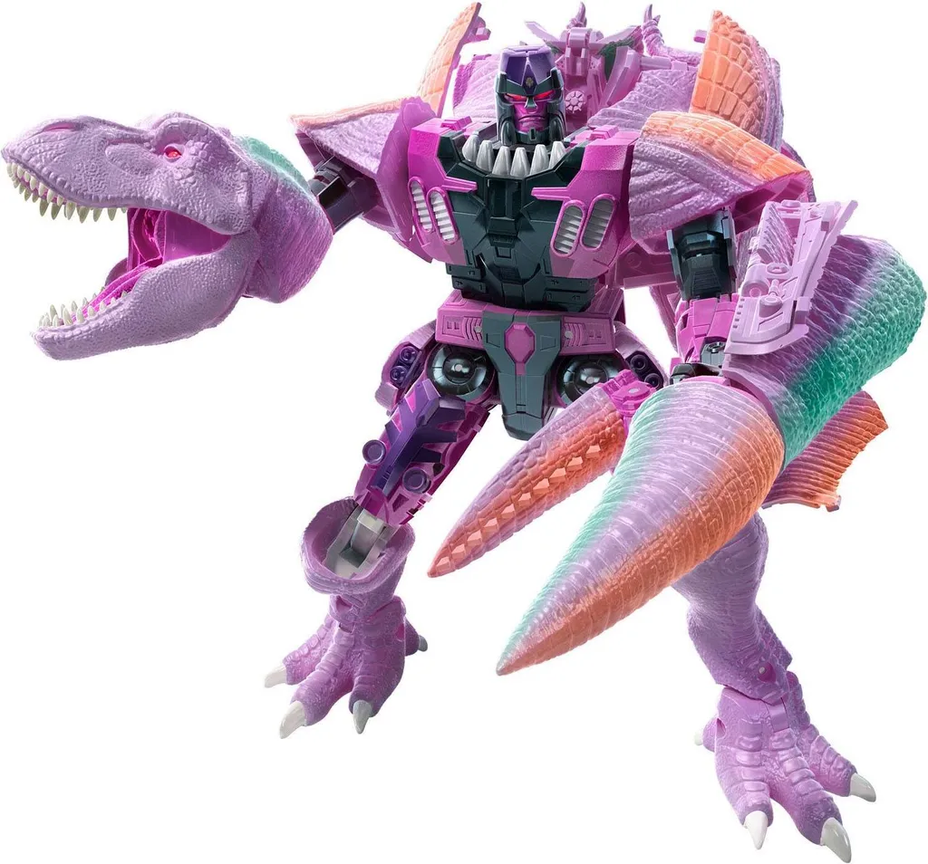 Diese Megatron (Beast) Sammelfigur mit detailliertem Biest-Modus und einem komplexen, von Dinosauriern inspirierten Look sowie einem beweglichen Kiefer mit Zähnen lädt die Fans ein, die ursprüngliche Kraft der Biester zu entfesseln … hat irgendjemand eine Zahnbürste? Die Figur lässt sich in 27 Schritten in einen durch Beast Wars inspirierten T-Rex verwandeln. Der Dino-Kopf und Dino-Schwanz der Figur verwandeln sich in klassische Klauen-Hände. Die Fans können einen Laserfeuer-Effekt hinzufügen, indem sie Battle-Effekt-Accessoires im Dinokopf platzieren (separat mit anderen Figuren erhältlich, je nach Verfügbarkeit). Jaaaaa …